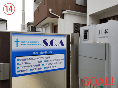 「ゴスペルミニストリーS.C.A」の看板が目印です。