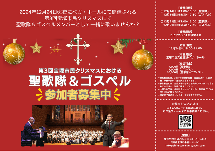 【参加費】第3回宝塚市民クリスマス聖歌隊およびゴスペル